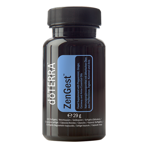 As Cápsulas Moles ZenGest doTERRA são uma forma prática e fácil de obter os benefícios da Mistura de Apoio ZenGest doTERRA. Cada cápsula mole de tapioca contém 120 mg de ZenGest, uma mistura de óleos que já conhece e na qual confia. A mistura ZenGest, própria da doTERRA, contém uma combinação única dos óleos de gengibre, hortelã-pimenta, alcaravia, anis-estrelado, semente de coentro, e funcho para ajudar a proporcionar um alívio calmante. As Cápsulas Moles ZenGest são essenciais para pessoas e famílias em viagem.